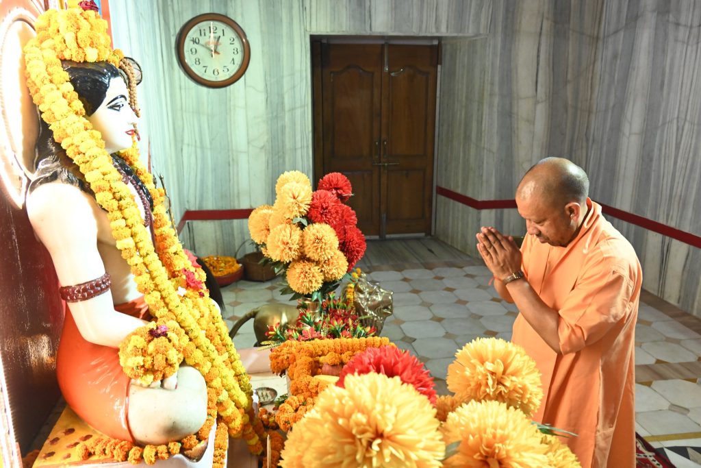 उत्तर प्रदेश के मुख्यमंत्री योगी आदित्यनाथ पहुंचे गोरखपुर गुरु गोरखनाथ का किया पूजा अर्चना अपने गुरु ब्रह्मलीन महंत अवैद्यनाथ का लिए आशीर्वाद