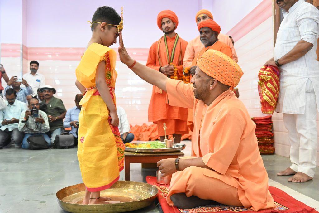 चैत्र नवरात्र की नवमी तिथि के अनुष्ठान में सीएम योगी एवं गोरक्षपीठाधीश्वर ने सबसे पहले कुंवारी कन्याओं के पांव धोये। उनके माथे पर रोली, चंदन, अक्षत आदि का तिलक लगाया। दुर्वा से उनका अभिषेक किया, माला पहनाई। चुनरी ओढ़ाकर एवं दक्षिणा प्रदान कर आशीर्वाद लिया। उन्होंने अन्न क्षेत्र में सभी कुंवारी कन्याओं व बटुकों की श्रद्धाभाव से आरती भी उतारी। पूजन के बाद इन कन्याओं को मंदिर की रसोई में पकाया गया ताजा भोजन प्रसाद योगी ने अपने हाथों से परोसा। कन्याओं के अतिरिक्त बड़ी संख्या में पहुंचे बटुकों को भी श्रद्धापूर्वक भोजन कराकर उपहार व दक्षिणा दिया गया। इस दौरान मुख्यमंत्री यह भी ख्याल रखते रहे कि किसी भी कन्या या बटुक की थाली में भोजन प्रसाद की कोई कमी न रहे। इसे लेकर वह मंदिर की व्यवस्था से जुड़े लोगों को निर्देशित करते रहे। पूजन के दौरान काशी से पधारे जगद्गुरु स्वामी संतोष दास उर्फ सतुआ बाबा, गोरखनाथ मंदिर के प्रधान पुजारी योगी कमलनाथ सहित कई संत व मंदिर प्रबंधन से जुड़े लोग उपस्थित रहे। कन्या पूजन से पूर्व प्रातःकाल के पूजन सत्र में मंदिर के शक्तिपीठ में मां सिद्धिदात्री की विधि-विधान से आराधना की।