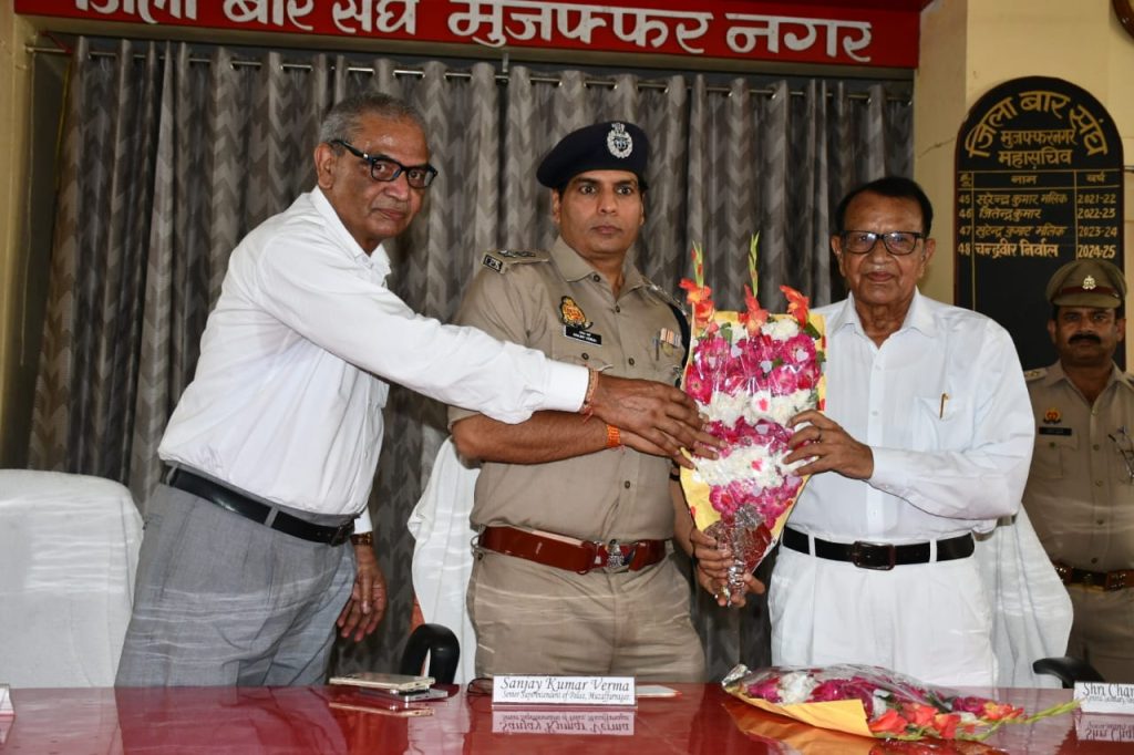 अवगत कराना है कि आज दिनांक 21.05.2025 को जिला बार संघ मुजफ्फरनगर के पदाधिकारियों द्वारा वरिष्ठ पुलिस अधीक्षक मुजफ्फरनगर श्री संजय कुमार का स्वागत किया गया। इस दौरान पुष्प गुच्छ भेंट कर व माला पहनाकर वरिष्ठ पुलिस अधीक्षक महोदय का स्वागत किया गया तथा जनपद से संबंधित कुछ अहम बातों पर चर्चा की गयी। बार संघ मुजफ्फरनगर ने वरिष्ठ पुलिस अधीक्षक मुजफ्फरनगर श्री संजय कुमार को जिले में शांति, आपसी भाईचारा व सद्भाव बनाने के लिए पुलिस व प्रशासन को पूर्ण सहयोग देने का आश्वासन दिया। जिला बार संघ के पदाधिकारियों द्वारा कहा गया कि वरिष्ठ पुलिस अधीक्षक श्री संजय कुमार अनुभवि अधिकारी है, जिन्होने हमेशा पूर्ण कर्तव्यनिष्ठा एवं जनसेवा के भाव से अपनी ड्यूटी का निर्वहन किया है हमें पूरा विश्वास है कि वह शहर को अपराध मुक्त बनाएंगे। वरिष्ठ पुलिस अधीक्षक महोदय ने जिला बार संघ को विश्वास दिलाया कि अधिवक्ताओं से अच्छी तरह तालमेल बनाते हुए कार्य करेंगे ताकि कानून व्यवस्था को पूरी तरह से कायम रखा जा सके।