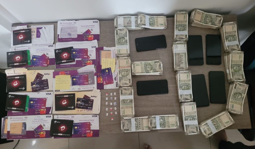 49 म्यूल बैंक खातों से जुड़े डेबिट कार्ड, चेक बुक्स, मोबाइल फोन, सिम कार्ड और अन्य डिजिटल डिवाइस ज़ब्त