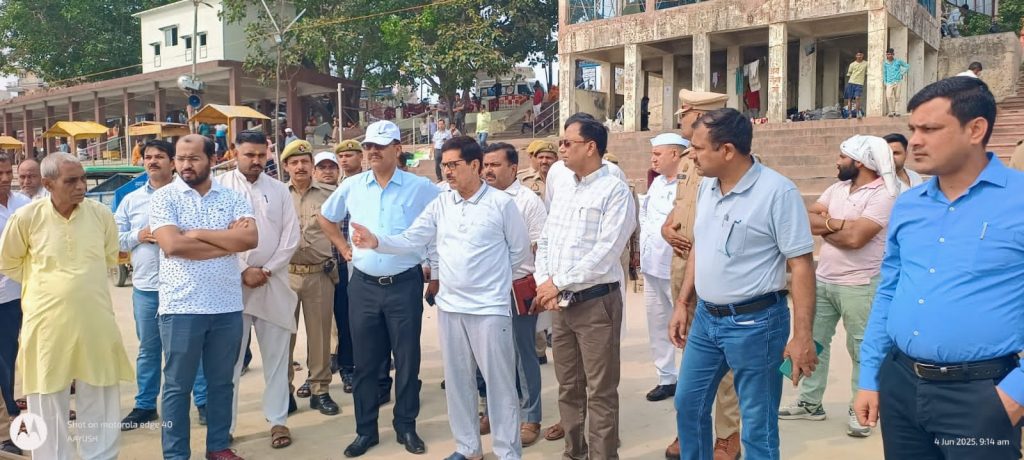 निरीक्षण के दौरान जिला पंचायत एवं जिलाधिकारी ने शुक्र तीर्थ गंगा घाट पर श्रमदान किया