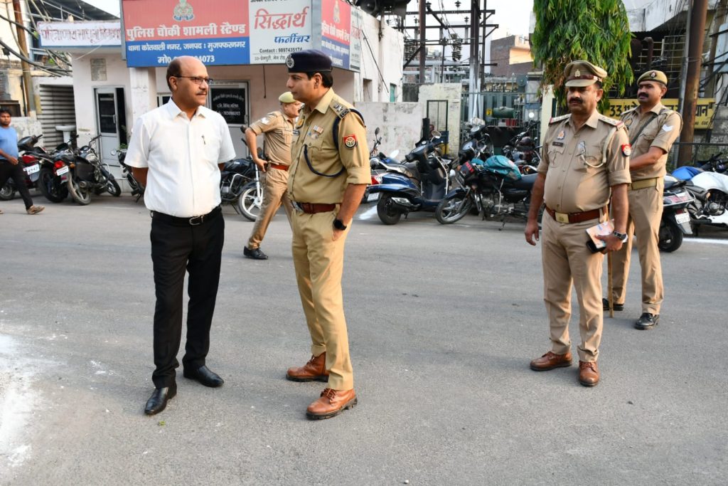 अवगत कराना है कि ईद अल-अजहा पर्व को जनपद मुजफ्फरनगर में सकुशल सम्पन्न कराने, आपसी सौहार्द बनाये रखने तथा कानून एवं यातायात व्यवस्था सुदृढ़ रखने हेतु आज दिनांक 07.06.2024 को जिलाधिकारी श्री उमेश मिश्रा व वरिष्ठ पुलिस अधीक्षक श्री संजय कुमार वर्मा द्वारा पुलिस बल के साथ निरंतर जनपद में भ्रमणशील रहते हुए सुरक्षा व्यवस्था का जायजा लिया गया । जिसके परिणामस्वरुप ईद की नमाज को जनपद में शांतिपूर्ण वातावरण में तथा सकुशल सम्पन्न कराया गया। महोदय द्वारा धार्मिक स्थल/ईदगाह का निरीक्षण करते हुए धर्मगुरुओं एवं स्थानीय लोगों को ईद की शुभकामनाएं दी गयी तथा आपसी सौहार्द को बनाये रखने की अपील की गयी। वरिष्ठ पुलिस अधीक्षक महोदय द्वारा डियूटी प्वाइंट पर तैनात पुलिस बल को सतर्क दृष्टि रखते हुए डियूटी करने, साम्प्रादायिक सौहार्द बिगाडने की कोशिश करने वालों/असामाजिक तत्वों करने वालों पर तत्काल कार्यवाही करने तथा यातायात व्यवस्था दुरुस्त रखने हेतु निर्देशित किया गया, साथ ही स्थानीय लोगों से आपसी भाईचारा बनाए रखने, अफवाहों पर ध्यान न देने, सोशल मीडिया पर किसी भी तरह की आपत्तिजनक/भ्रामक पोस्ट न शेयर करने तथा आपसी सौहार्द बिगाडने की कोशिश करने वालों की सूचना तत्काल पुलिस को देने की अपील की गयी। सुरक्षा व्यवस्था को सुदृढ़ रखने हेतु पर्याप्त संख्या में पुलिस बल की तैनात की गई है एवं ड्रोन कैमरों से निगरानी की जा रही है। इस दौरान ADM(E) श्री संजय कुमार, नगर मजिस्ट्रेट श्री पंकज प्रकाश राठौर, पुलिस अधीक्षक नगर श्री सत्यानारायण प्रजापत, क्षेत्राधिकारी नगर श्री राजू कुमार साव सहित अन्य पुलिस व प्रशासनिक अधिकारी/कर्मचारीगण मौजूद रहे।